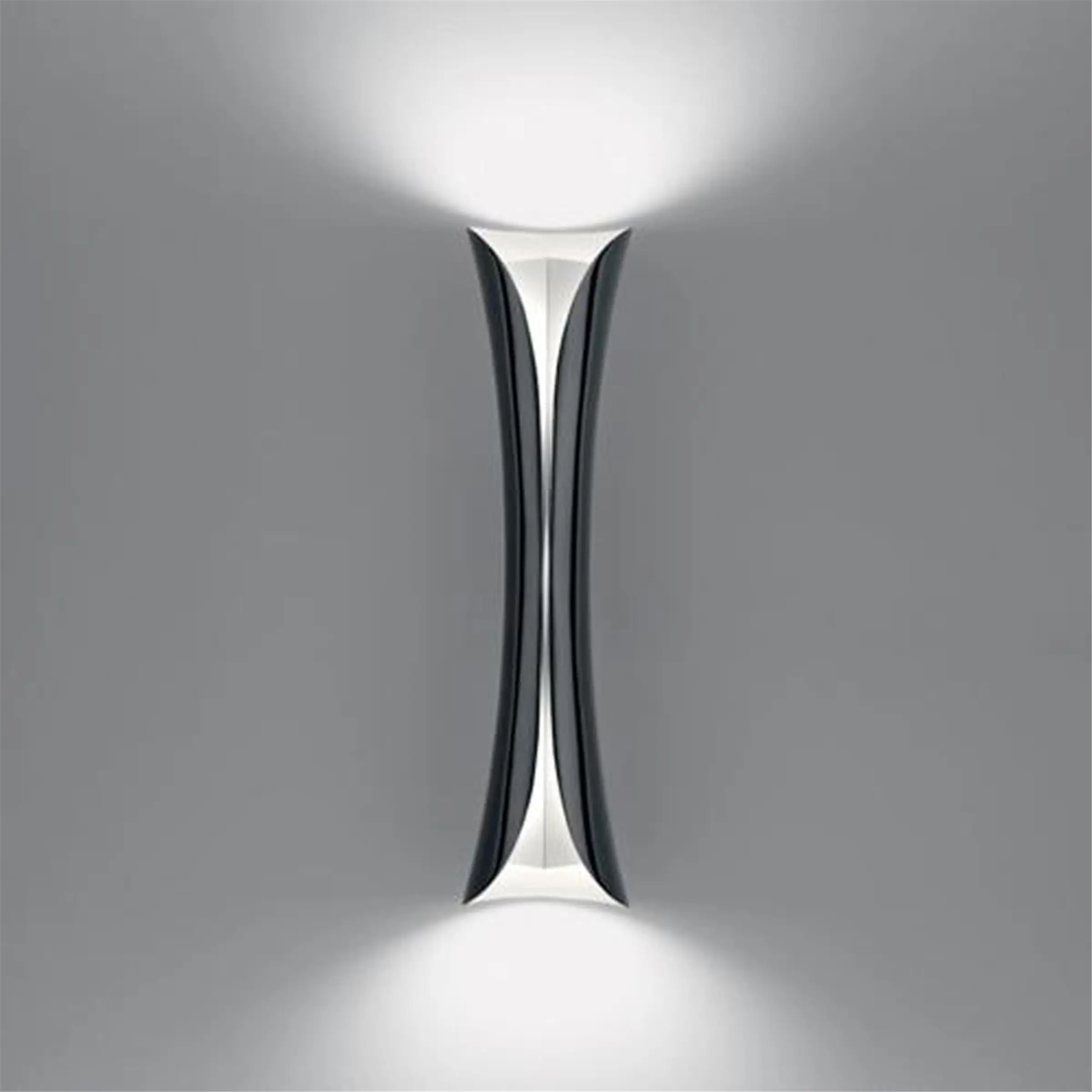 Lampada da terra e da parete. Un foglio d'acciaio avvolge e sprigiona nello stesso tempo una morbida luce, indiretta verso l'alto e diffusa lungo l'apertura verticale della lampada. Corpo lampada in acciaio verniciato con copribase in acciaio inox verniciato. Con regolatore d'intensità luminosa.