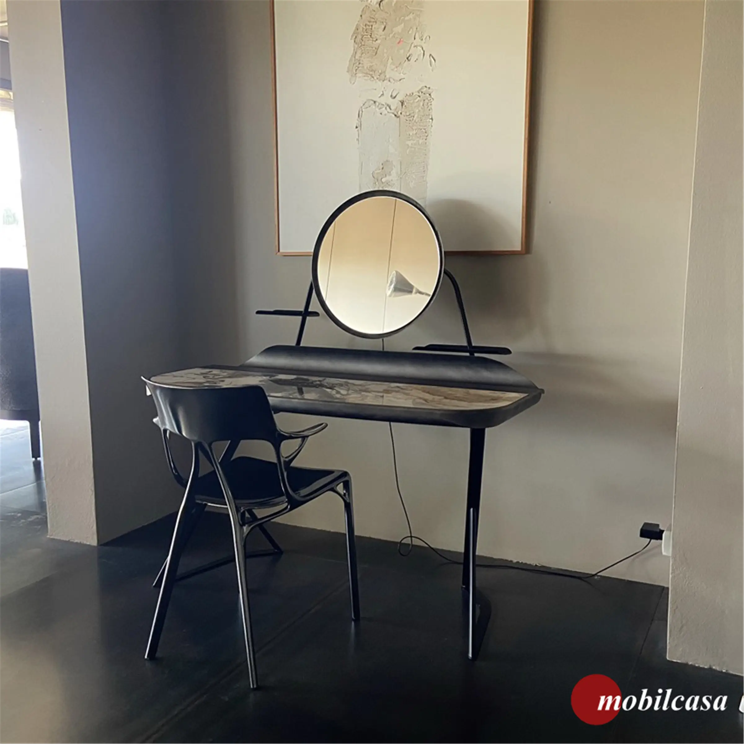 130x61x80h, struttura in metallo goffrato nero, piano in marmo Makalu.