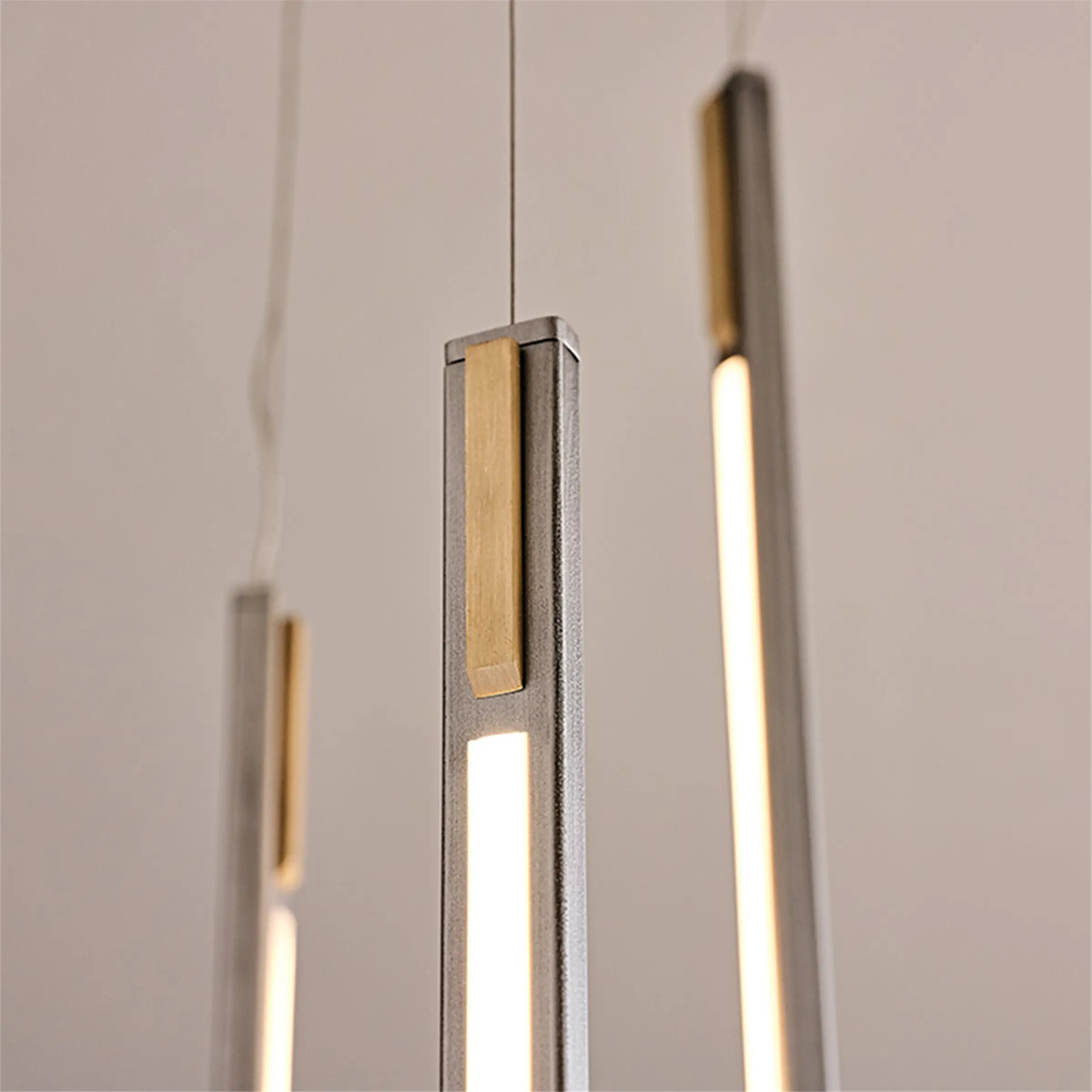 Questa composizione di lampade sospese è quel dettaglio in grado di unire insieme i singoli elementi presenti in una stanza e trasformarli in un ambiente di design coordinato. Gli archi che si incrociano a mezz'aria, creano sezioni geometriche che risultano rassicuranti nella loro matematica precisione. Queste sovrapposizioni si ottengono affiancando lampade di diverse dimensioni e altezze, ma la lampada Nahun è perfettamente in grado di arredare singolarmente, esaltando ulteriormente i contrasti tra i piani orizzontali di tavoli, tavolini e madie, e le linee verticali di questa lampada moderna. Una striscia di luce LED è posizionata lungo tutto il bordo esterno della lampada, diffondendo una luce morbida e distribuita. Alle estremità della struttura, sono posizionati due minuti tasselli ottone, tra i pochi elementi di decoro, dallo stile minimalista ma in grado di catturare l'attenzione.