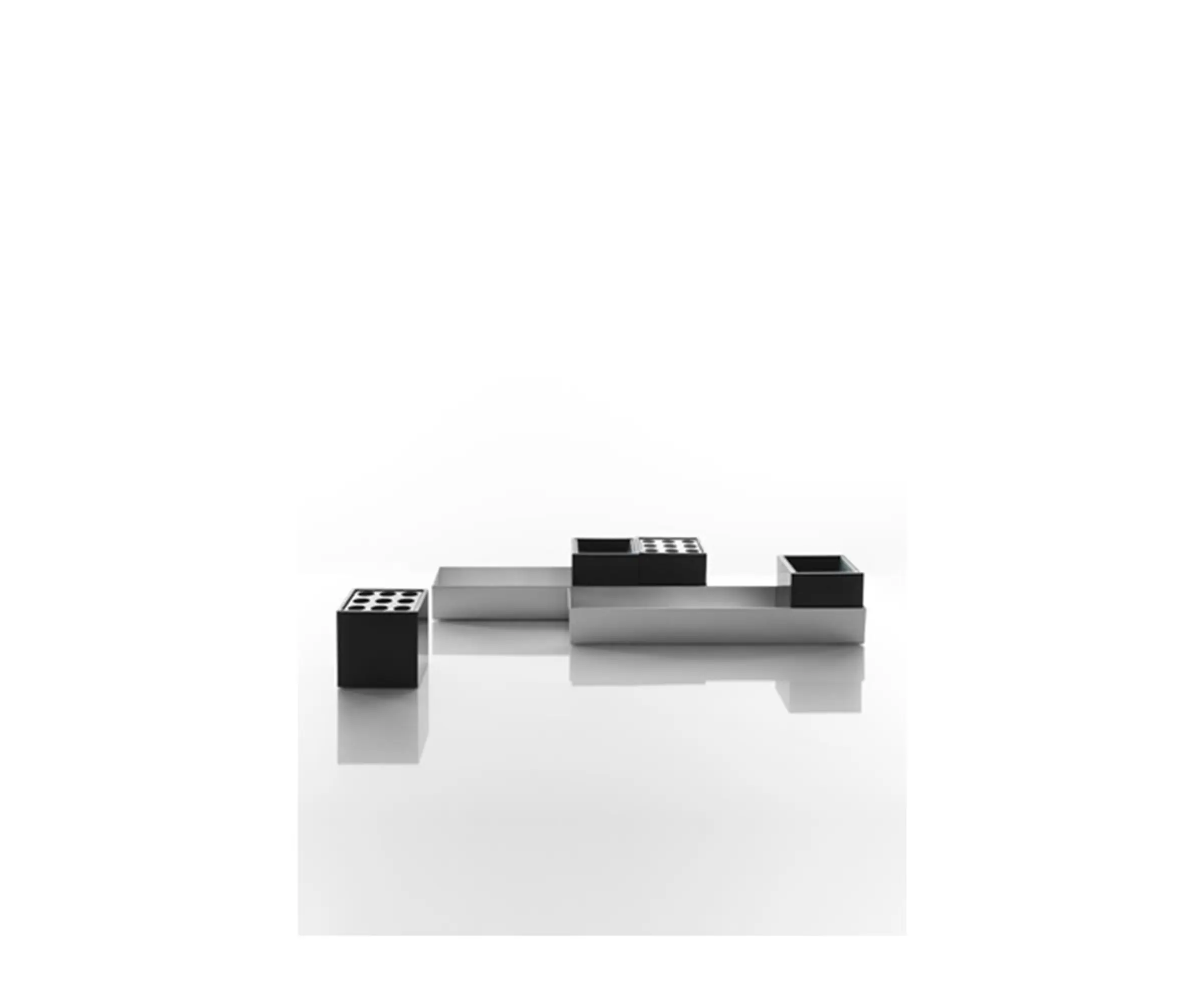 Canarie è un servizio da scrivania design Buno Munari. Il servizio si compone di due alloggi in alluminio naturale che accolgono gli elementi inerni. E' possibile scegliere tra due configurazioni: A - 2 posacenere, 1 portamatite, 1 portafermagli; B - 2 portamatite, 2 portafermagli. Entrambe le configurazioni sono disponibili in 2 varianti cromatiche, nero o bianco.