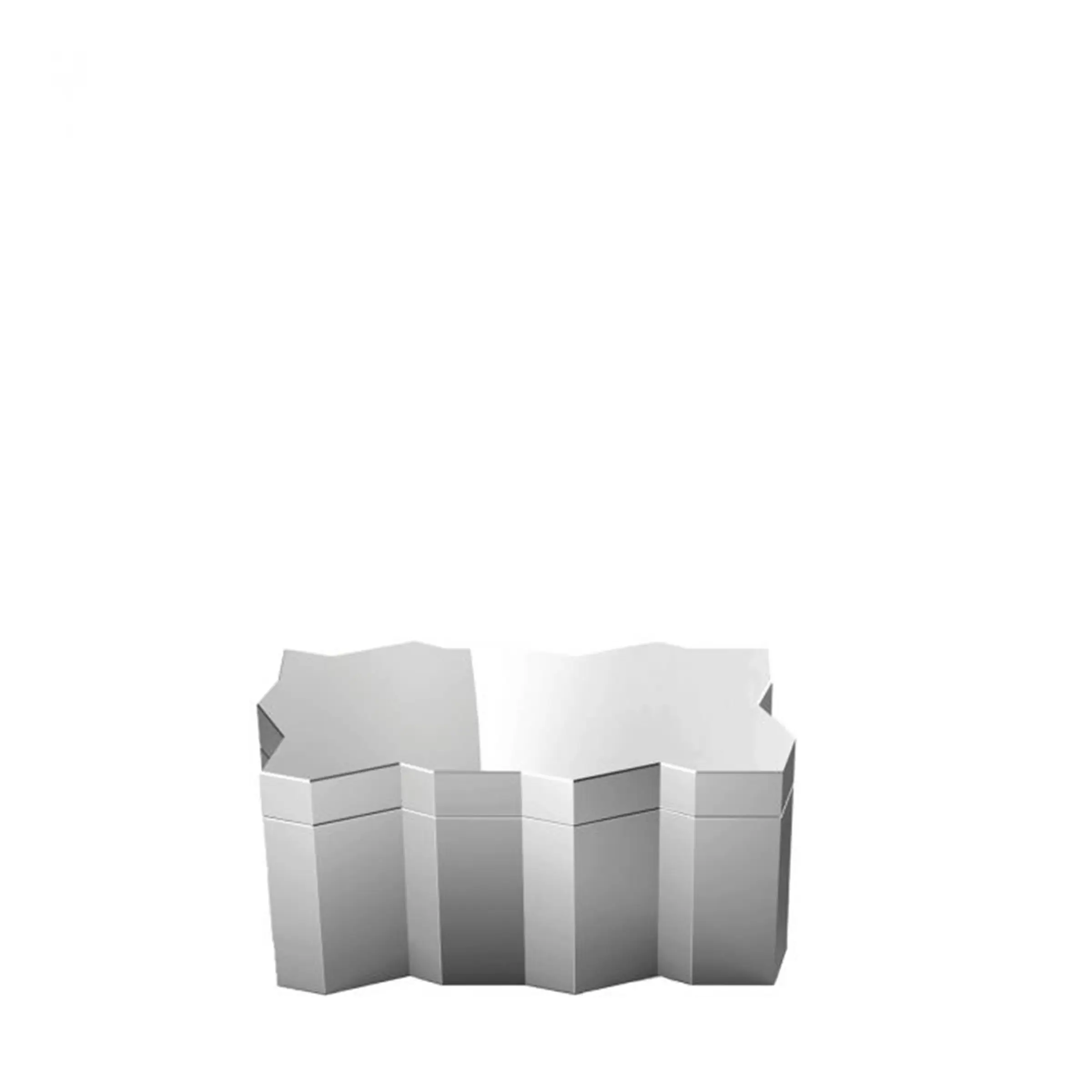 Frammenti è il nome della collezione realizzata per Driade dallo studio Borromeo De Silva. Una serie di 4 scatole dai profili frammentati e definiti, “4 pezzi perfettamente combacianti di un insieme fratturato”. Come in puzzle tridimensionale queste scatole possono essere accostate l’una all’altra, all’infinito, a creare molteplici geometrie. Grazie alle loro dimensioni e al loro design elegante e ricercato questi Frammenti diventano contenitori perfetti per ogni ambiente. Scatole realizzate in alluminio lucido elettrobrillantato con finitura a specchio. Interno in legno. Uso solo interno.