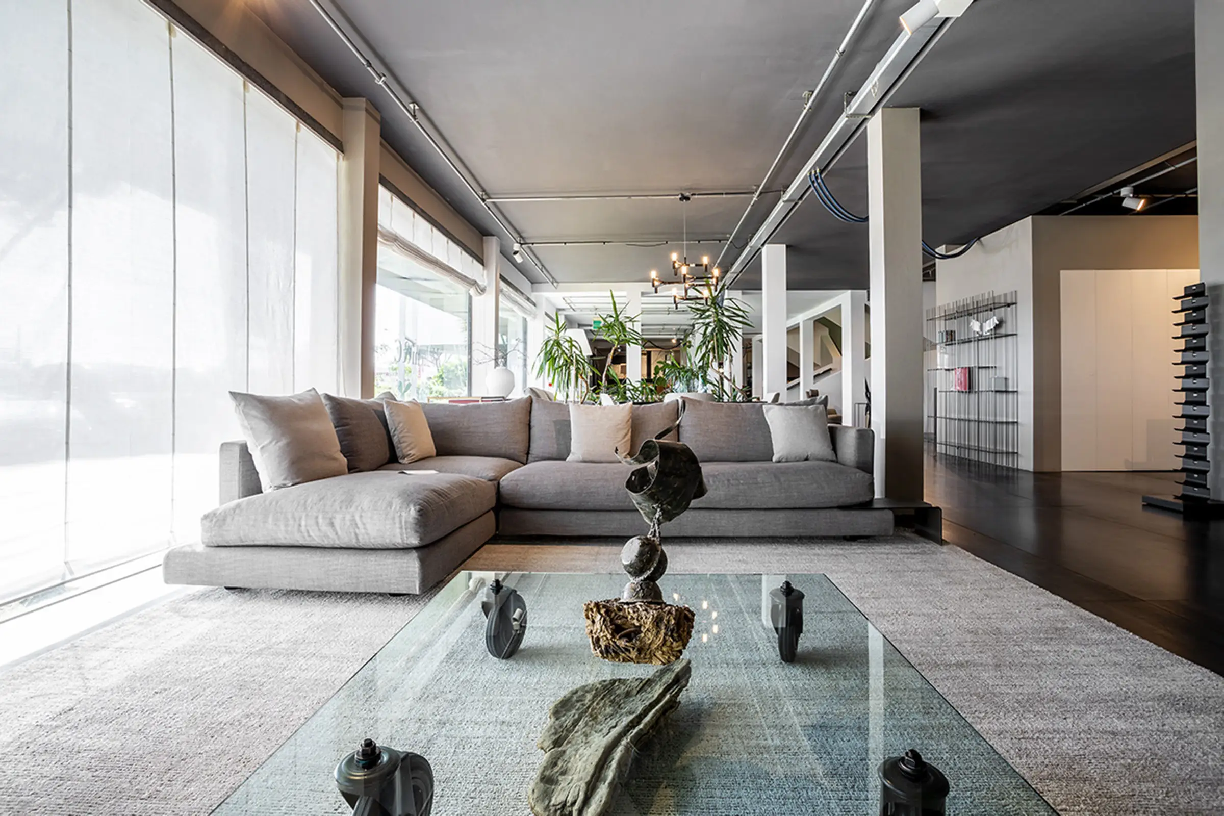 Il sistema di sedute Long Island 05 è connotato dal disegno del bracciolo che si presenta leggermente arretrato rispetto alla seduta che è profonda 111 cm ed ha imbottiture in piuma d’oca con inserto in materiale indeformabile oppure in poliuretano e dacron, consentendo pertanto di assumere una postura particolarmente confortevole e rilassata. La base del divano è stata progettata appositamente per consentire l’inserimento di pratici tavolini di servizio caratterizzati da una linea essenziale ma resi preziosi dal rivestimento in cuoio.
