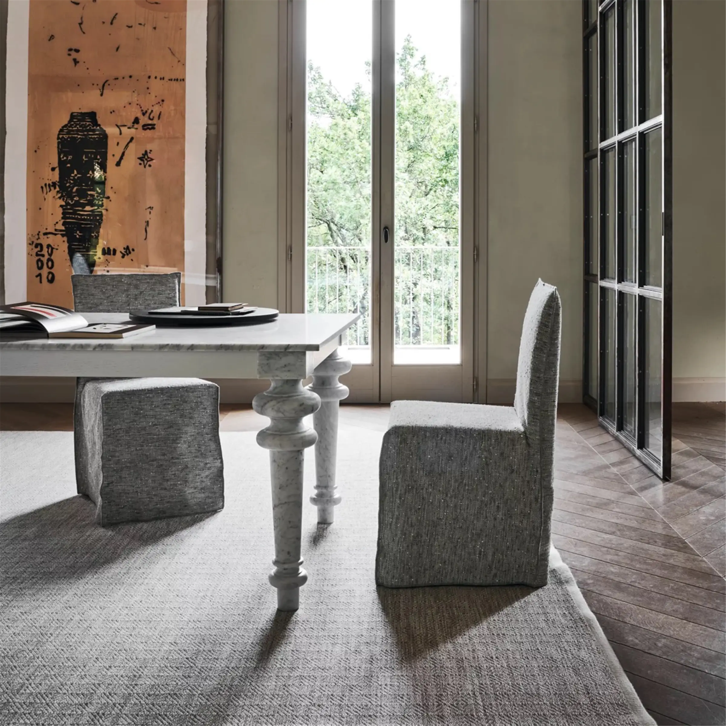 Sedie con e senza braccioli, hanno una struttura minimale, con forme geometriche pulite e definite. La famiglia di sedie Ghost ha una struttura in legno che si unisce a imbottiture in poliuretano espanso. La caratteristica principale delle sedie Ghost è il rivestimento sfoderabile, una housse oversize il cui profilo è sottolineato dalle cuciture a vista, che permette ai prodotti di svestirsi e rivestirsi in un baleno. Si tratta di un progetto tessile che cambia facilmente volto, permettendo di passare da un look formale ad uno informale con facilità e velocità. Disponibile in tutti i tessuti eccetto 3D.