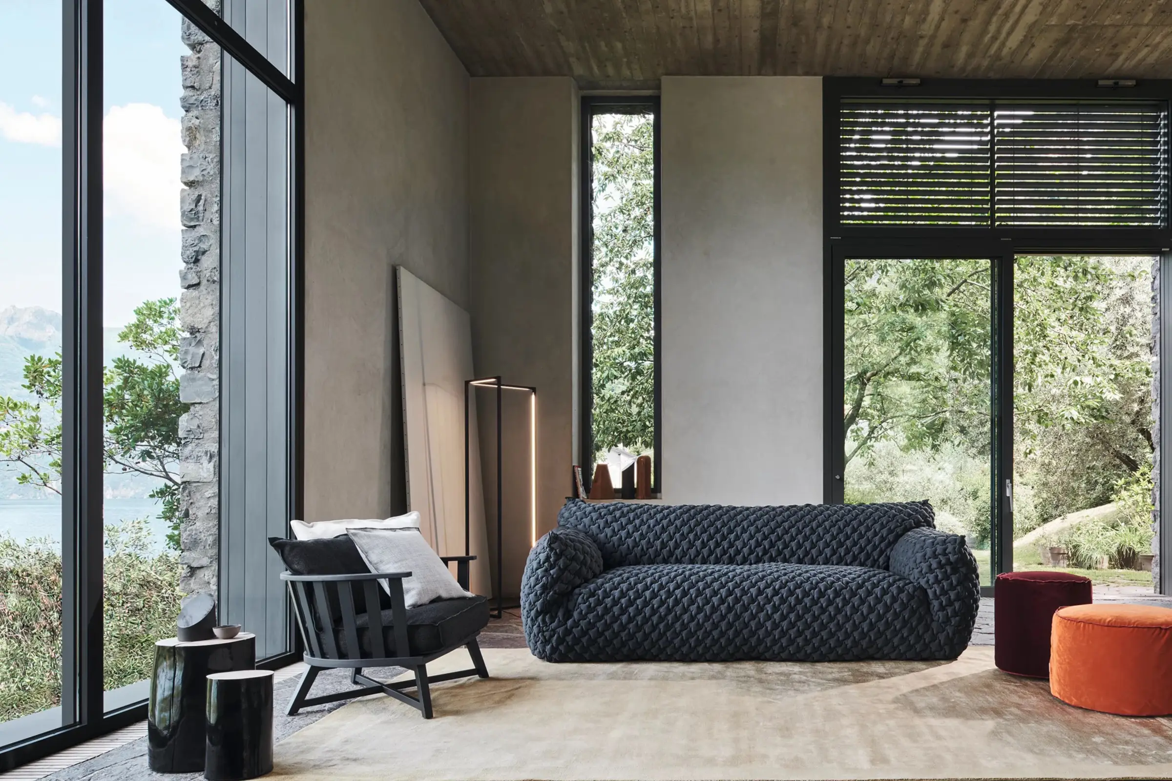 Famiglia di divani dalle forme soffici e attraenti, Nuvola ha un’estetica che invita a tuffarcisi dentro: i braccioli alti accolgono una seduta profonda come un abbraccio creando un vero e proprio effetto cocoon. Disponibili da due o tre posti, hanno l’imbottitura in poliuretano espanso a quote differenziate rivestita con trapuntino imbottito con piuma d’oca e fiocco di fibra di poliestere. Il rivestimento è sfoderabile con cuciture a vista che disegnano il profilo del prodotto, ed è realizzabile con tutti i rivestimenti a catalogo all’insegna della massima versatilità.