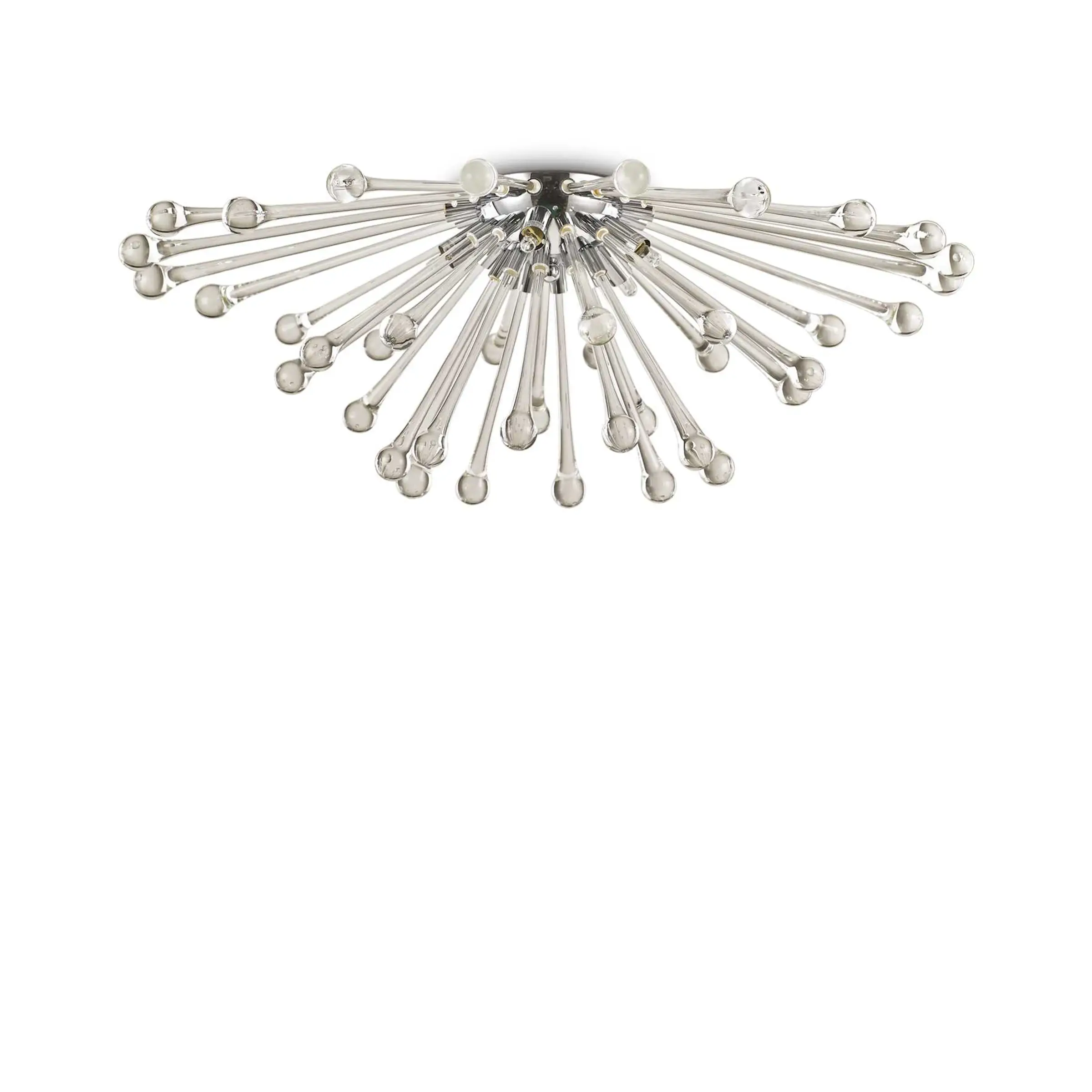 Montatura in metallo cromato. Elementi decorativi in vetro trasparente modellato a mano e cromato.