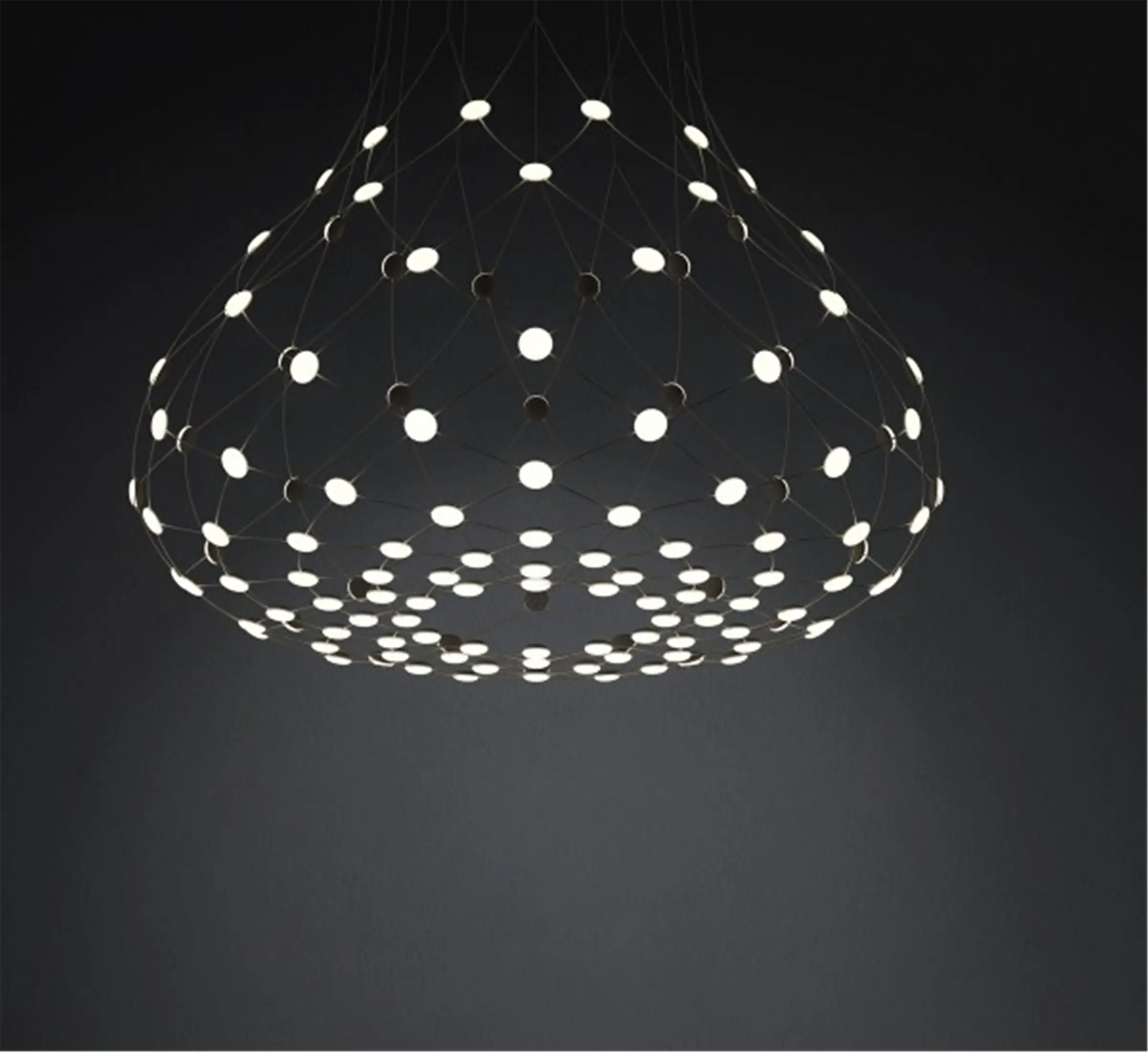 Mesh è una lampada a sospensione che si ispira alla natura e alle sue forme, prendendo spunto dalle macchie a forma d'occhio nella ruota di un pavone e alla disposizione dei semi nel girasole. Tutte queste forme d'arte naturale ispirano Mesh e il suo incredibile design. Un eccezionale esempio di ottimizzazione degli spazi che si unisce all'indipendenza dei vari punti luce fanno di questa lampada un'opera d'arte che vi stupirà. La sua struttura, estremamente complessa ed assolutamente innovativa, permette una incredibile libertà di gestione dell'illuminazione: potrete infatti personalizzare l'intensità luminosa per settori, o per anelli, o per zone.