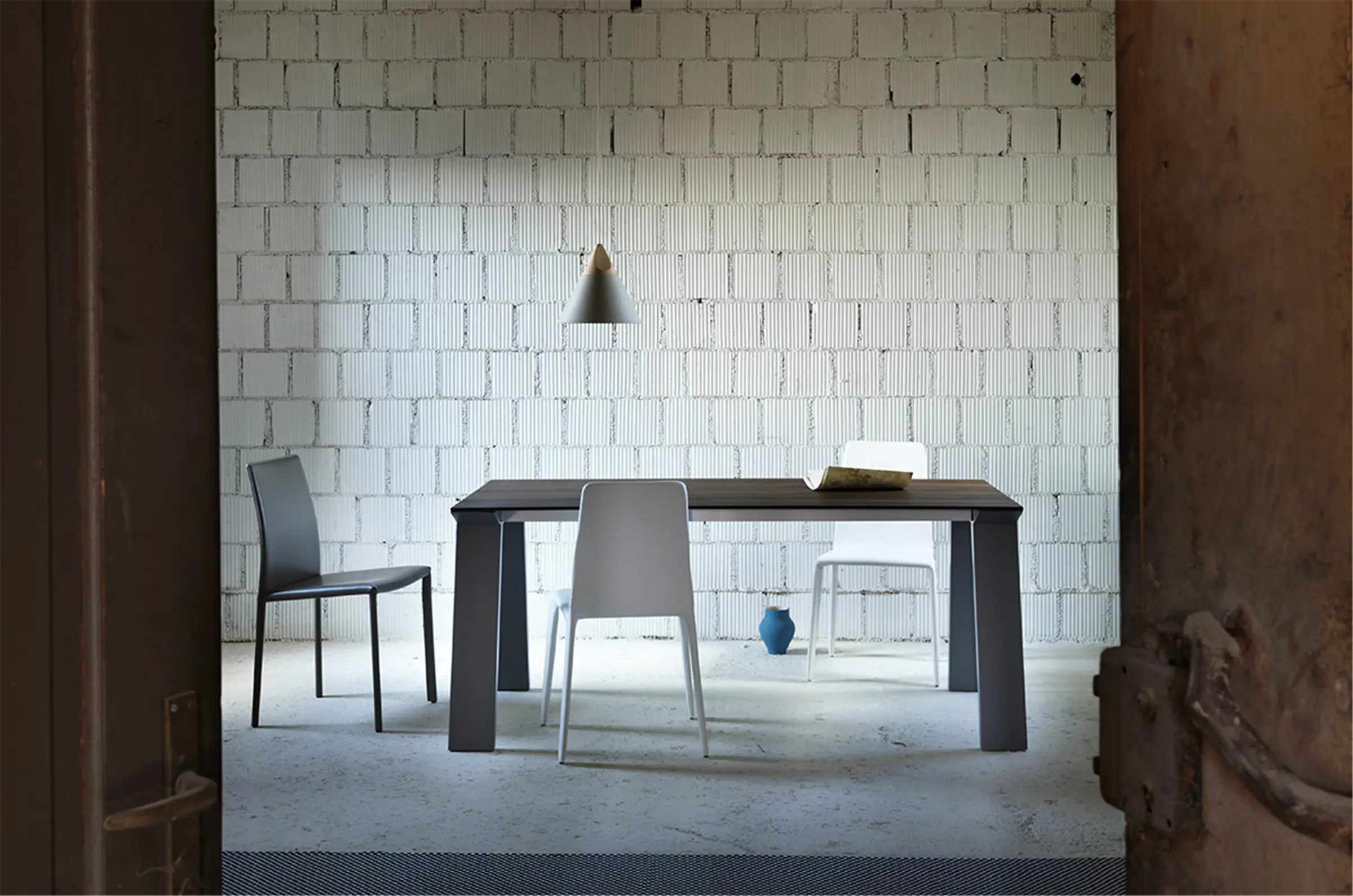 Artù è un tavolo dalle forme sobrie e dalle linee minimali, funzionale nell’uso grazie ad un razionale sistema allungabile. Le gambe sono realizzate in legno massello, il piano in essenza impiallacciata su alluminio, in vetro extrachiaro satinato retro laccato, in ceramica o in Fenix.