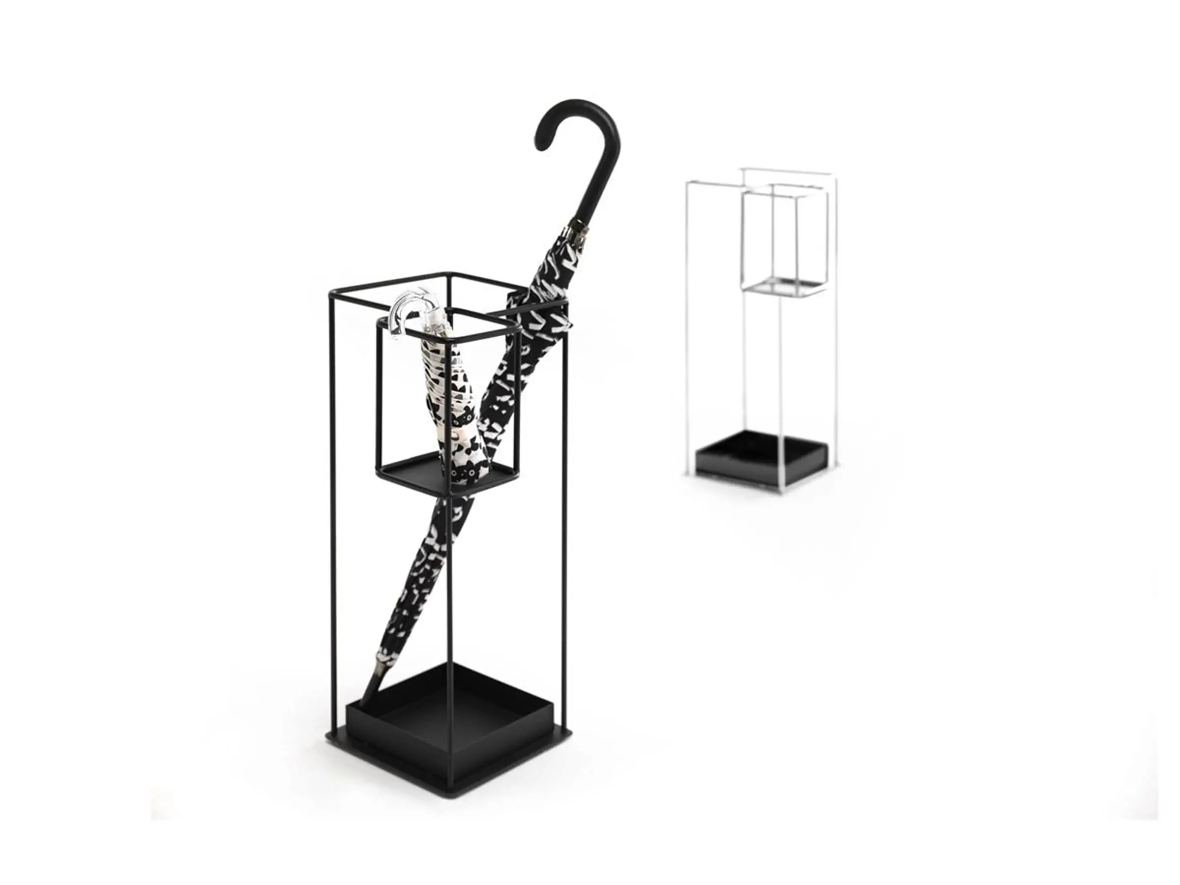 Duo è un portaombrelli realizzato in metallo verniciato nero. E’ un utile accessorio dalle linee semplici che prevede l’alloggiamento sia degli ombrelli classici che quelli piccoli pieghevoli.