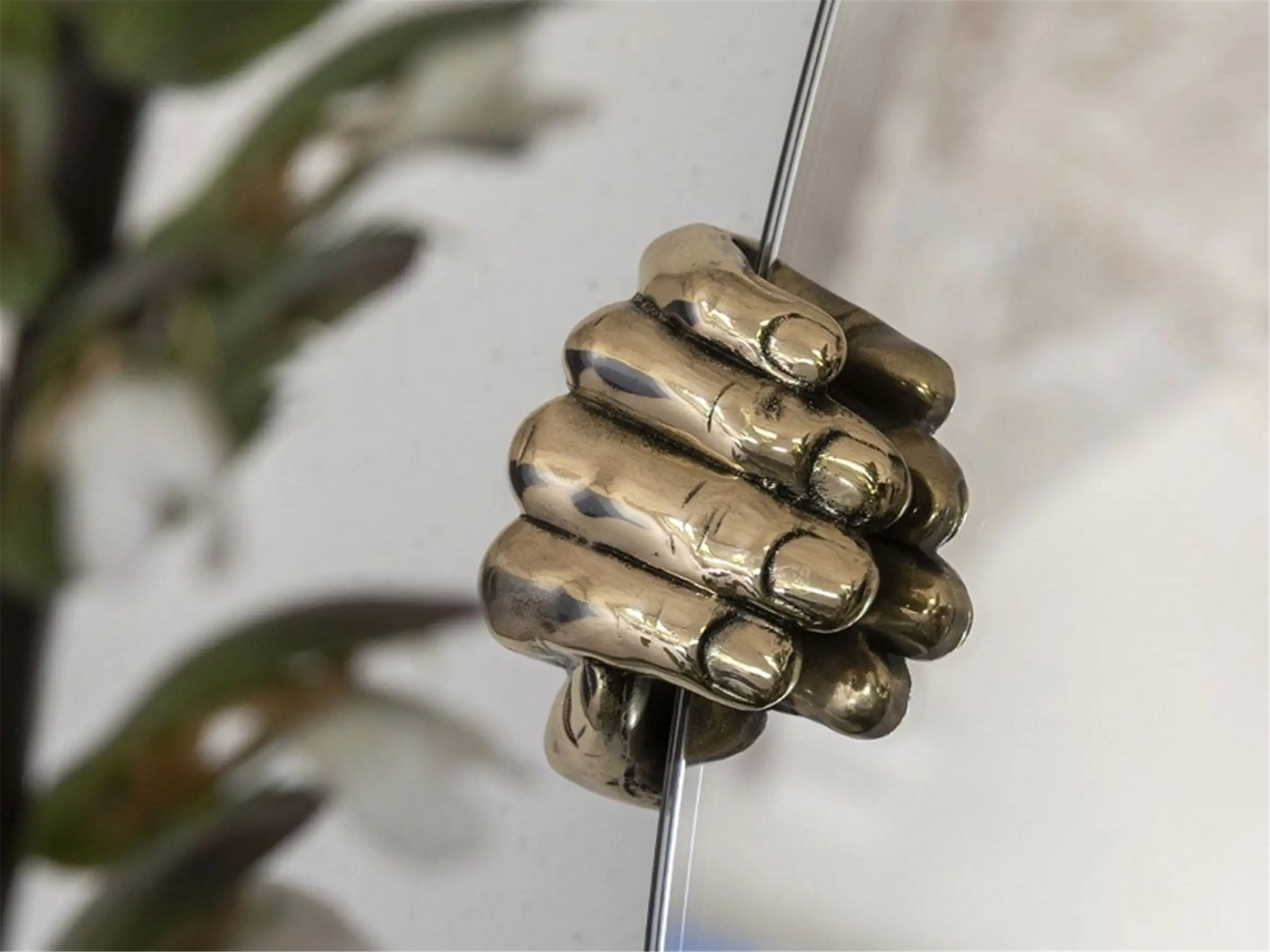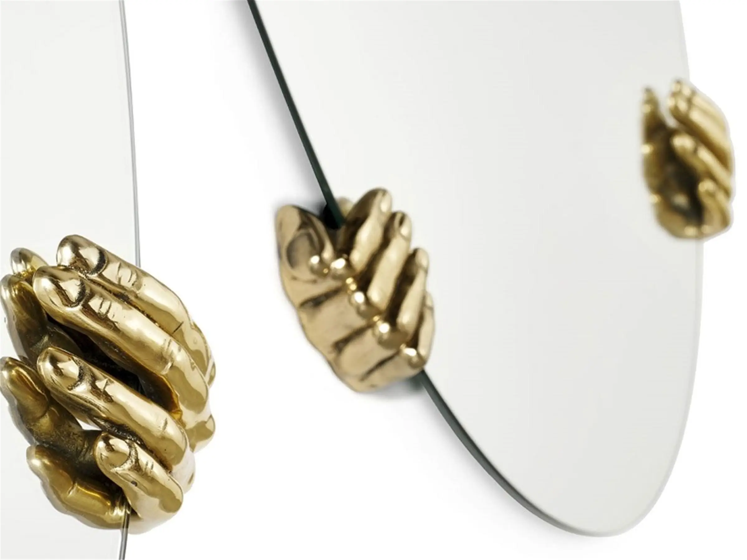 Selfie è uno specchio da parete con mani decorative in fusione di ottone. La collezione Selfie enfatizza la dimensione illusoria dello specchio e moltiplica la realtà attraverso una serie di mani posizionate sul bordo degli specchi creando differenti configurazioni.