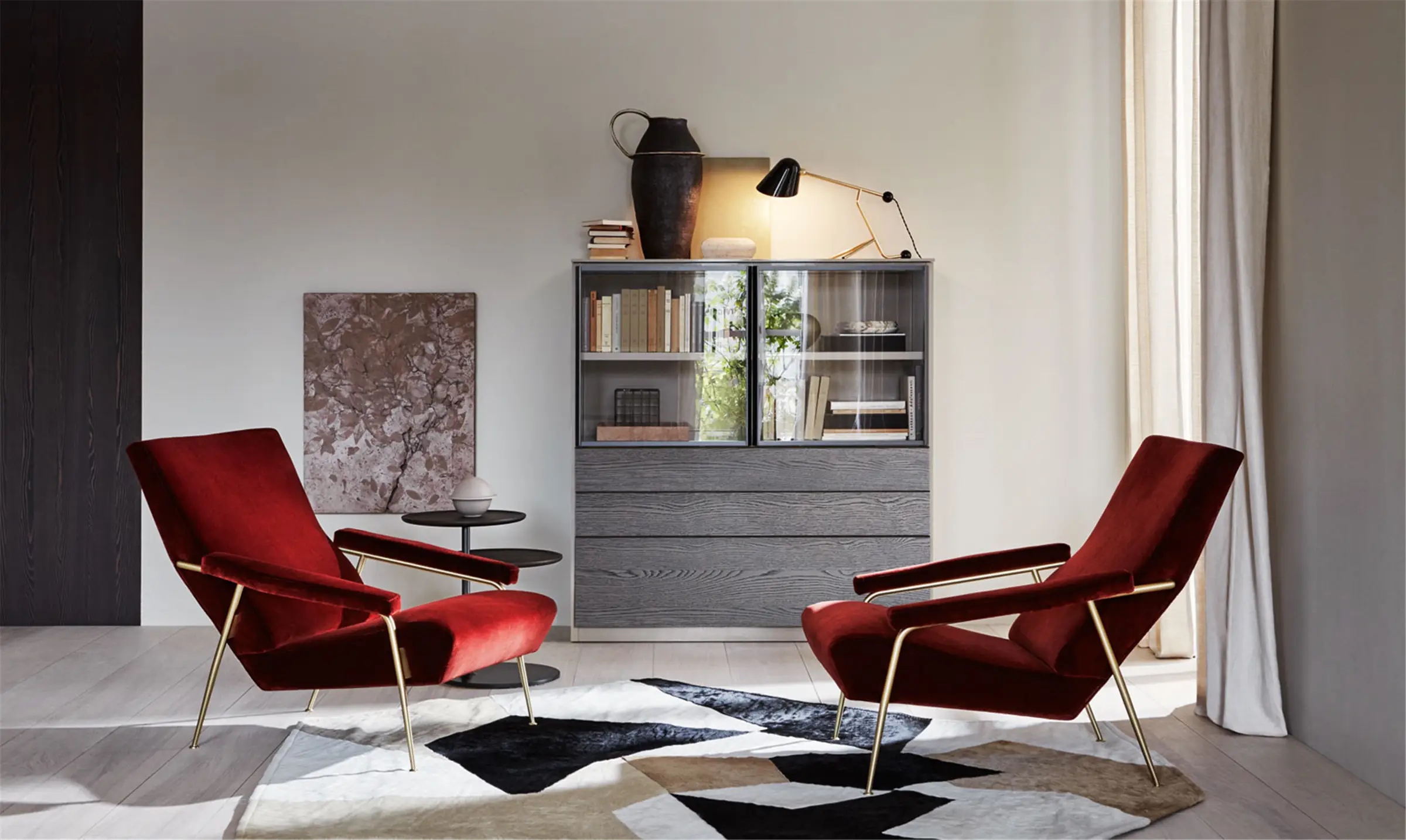 Tappeto dall’insolita forma geometrica, disegnato nel 1954 come prototipo per la casa Ponti di via Dezza a Milano. Realizzato in cavallino a più colori.