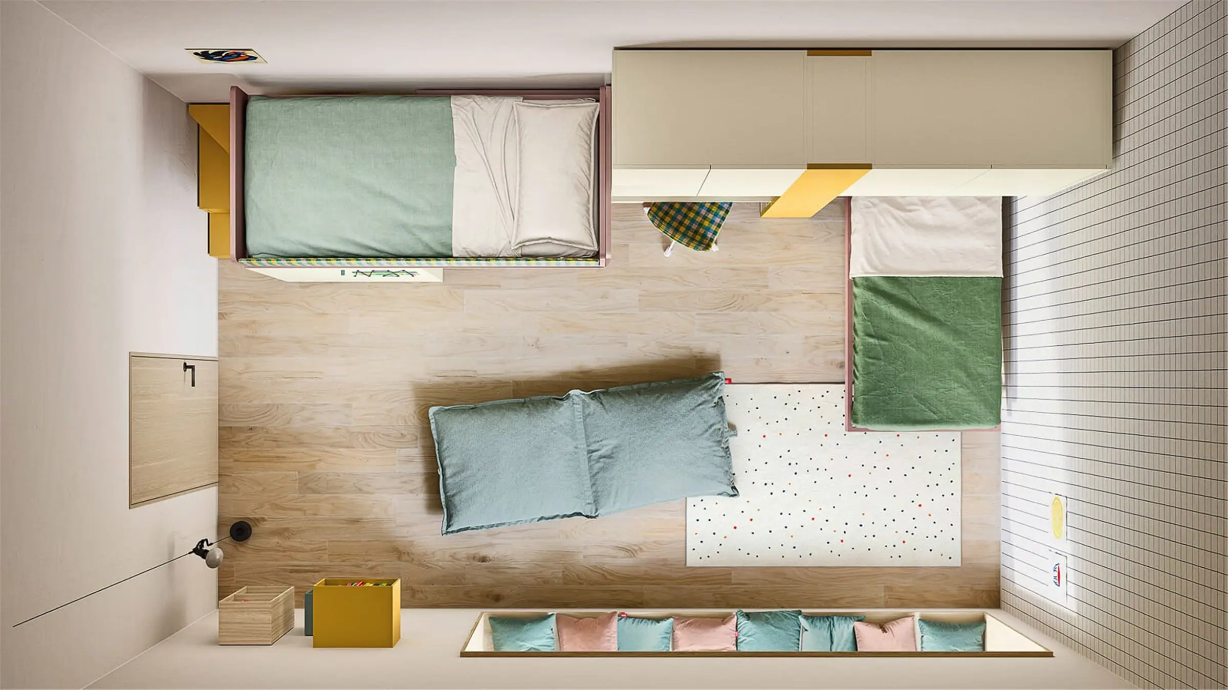 Greta e Olivia condividono la cameretta ma hanno ognuna il proprio spazio per dormire, studiare, riporre libri e vestiti, giocare.