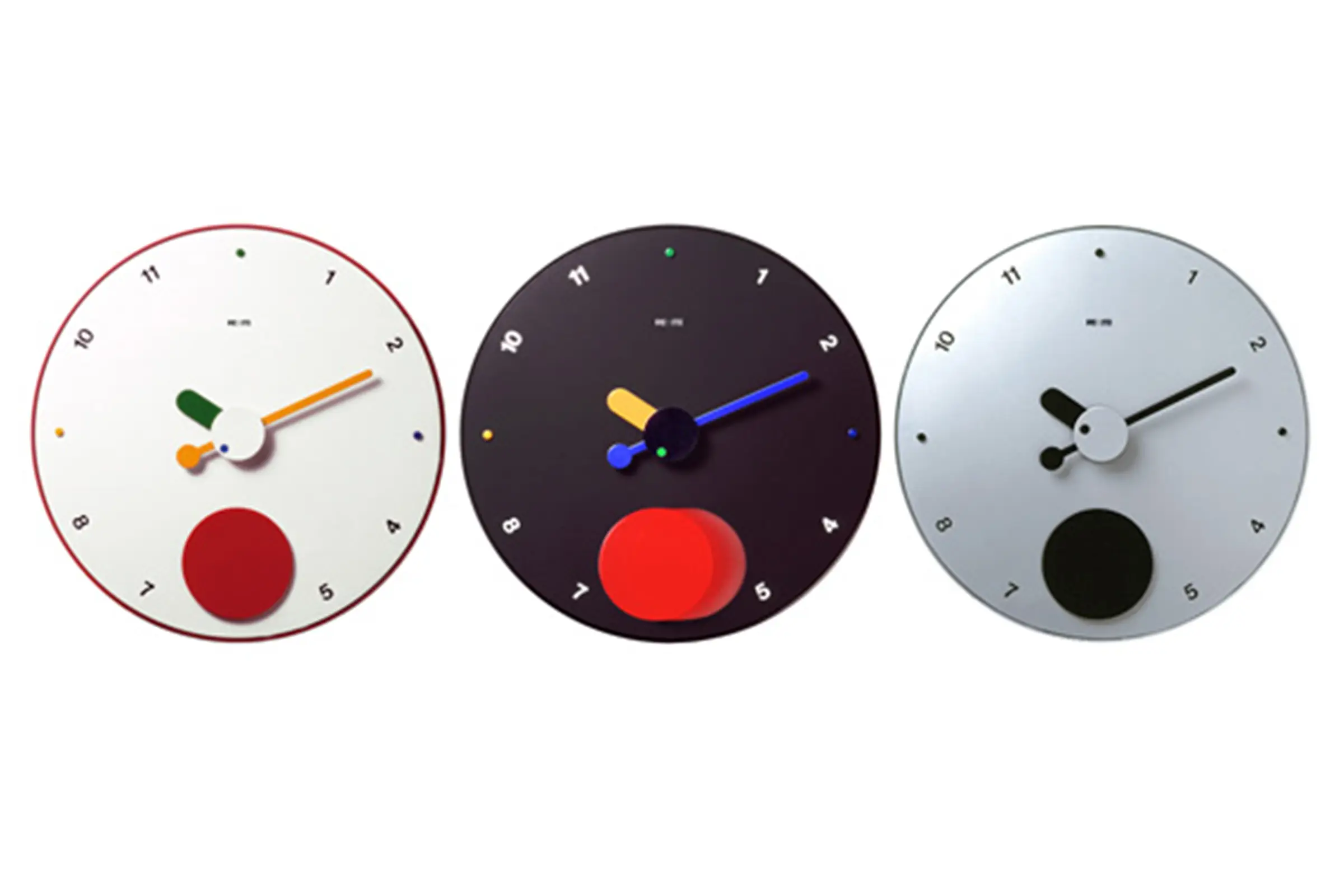 Il grande disco rosso oscilla senza sosta magicamente sospeso sul quadrante e rende più lievi gli immancabili imprevisti quotidiani, regalando prezioso buon umore, in ufficio come a casa.