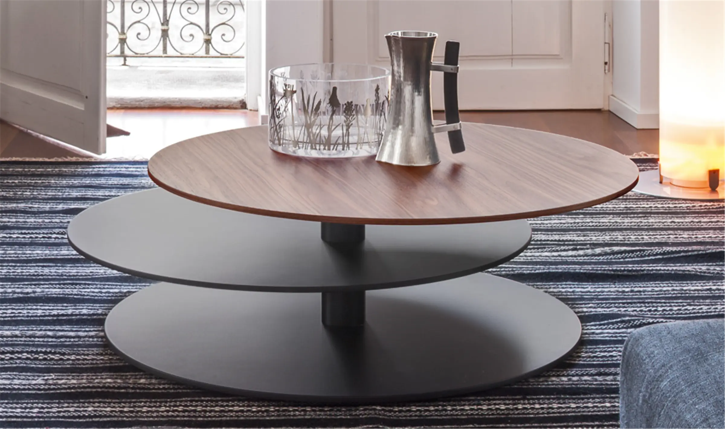 Tavolino a 3 piani, disponibile in diverse finiture, monocolore e bicolore.