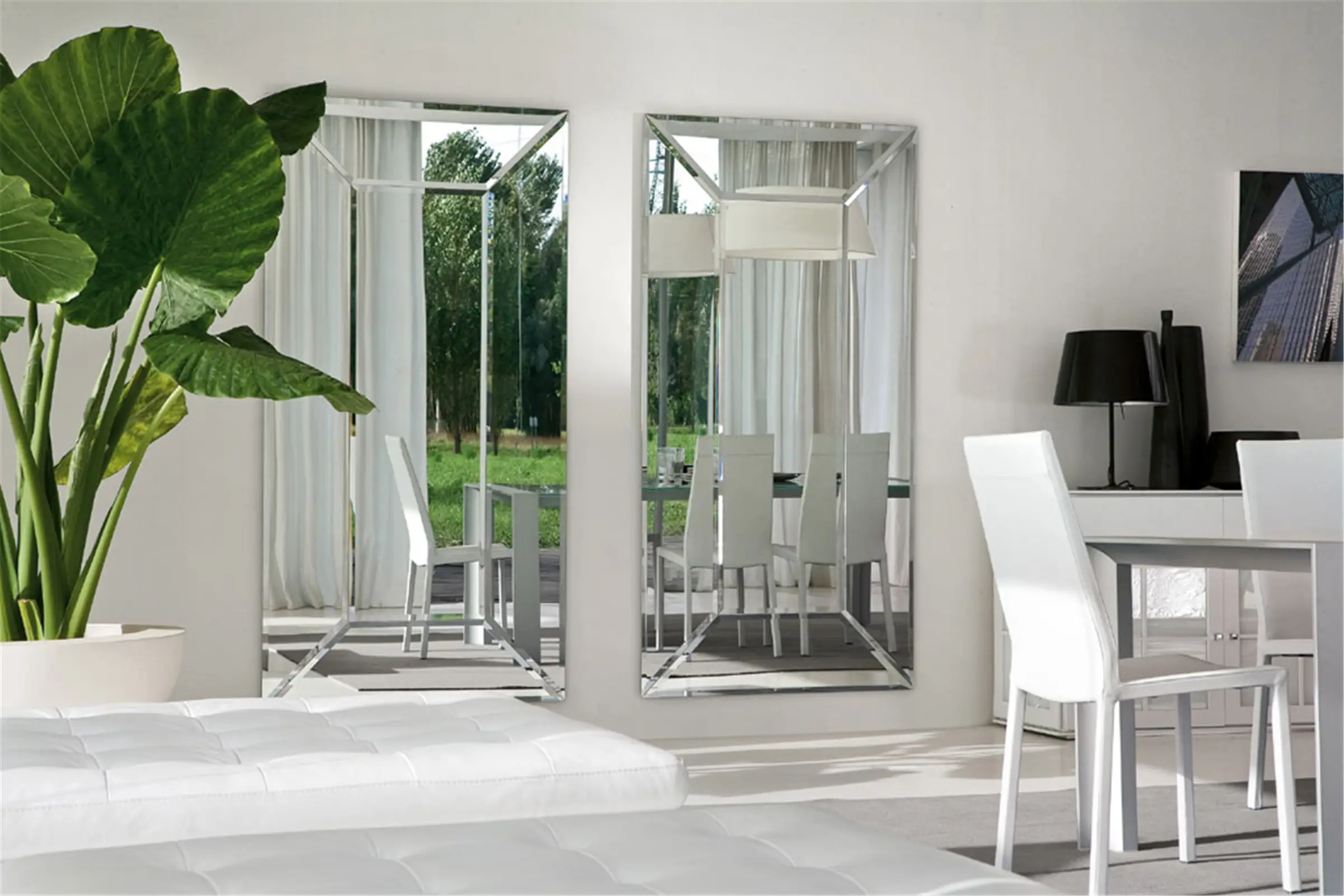 Specchiera di forma rettangolare con bisello. Ideale per completare l'arredamento del salotto o della zona giorno.