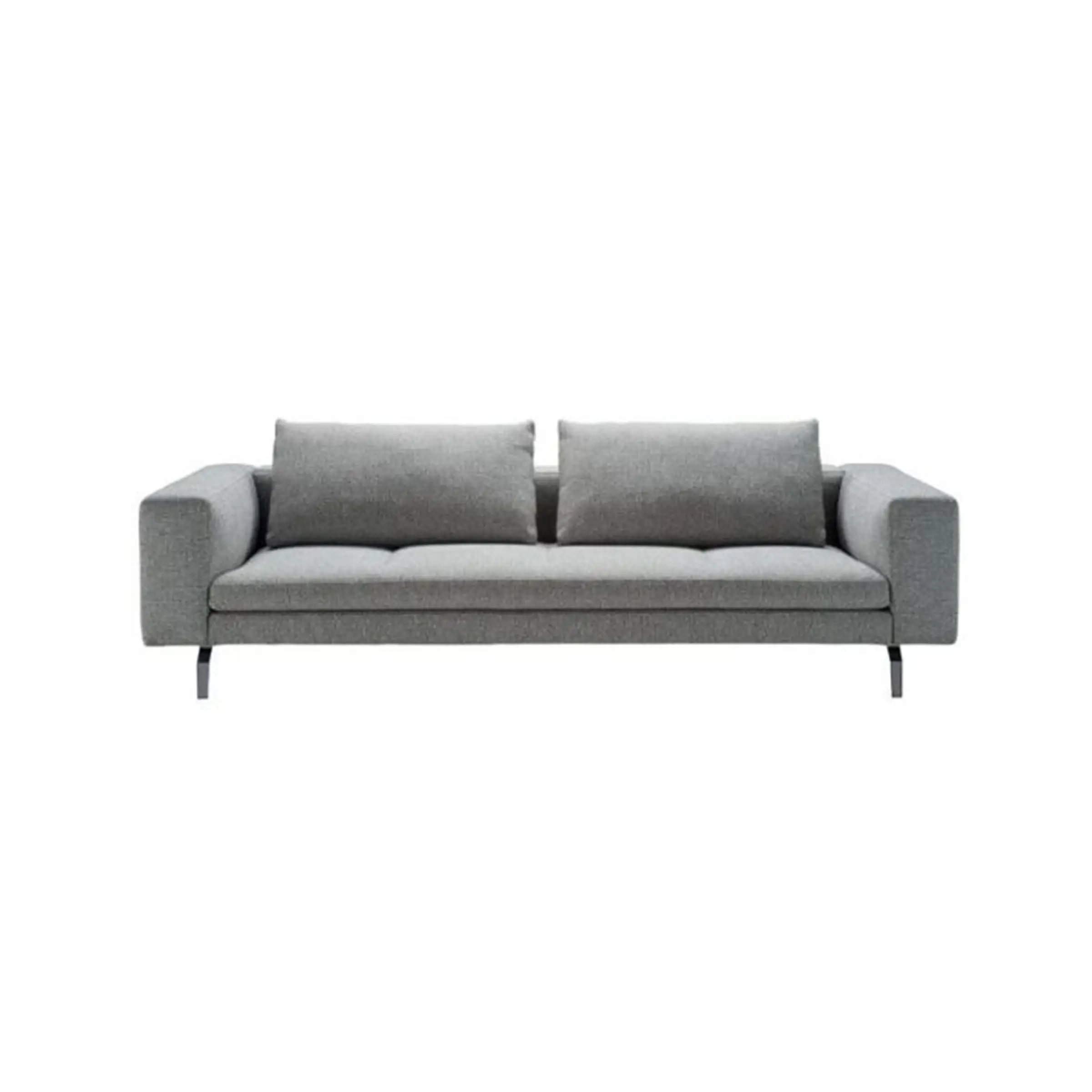 Piedini in lega di alluminio lucidato, nichelsatinato colore naturale o nero, oppure verniciato colore nero. Struttura in acciaio. Molleggio su nastri elastici. Imbottitura in poliuretano a quote differenziate/ Dacron Du Pont. Cuscino seduta in poliuretano/ Dacron Du Pont. Cuscino schienale in piuma d'oca – materiale 100% vergine. Rivestimento interno inamovibile in tessuto di nylon e di cotone per i cuscini dello schienale. Rivestimento esterno sfilabile in stoffa o in pelle.