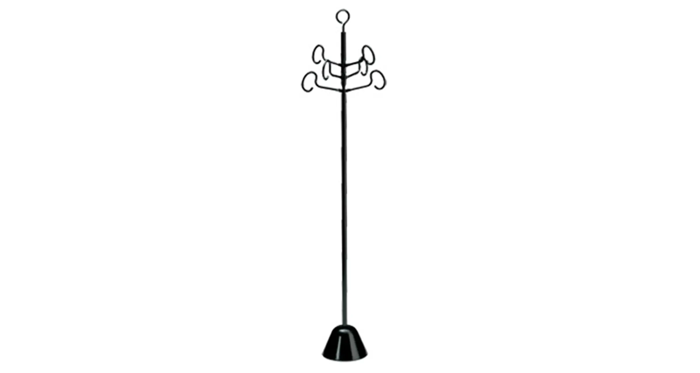 Appendiabiti. Base in polipropilene verniciato nero o bianco. Asta di sostegno e bracci appendiabiti in acciaio verniciato, colore nero o bianco.
